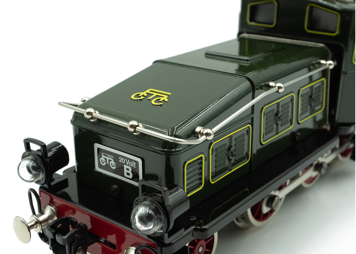 Modell: Mit separat angesetztem, hochgestellten Bremserhaus. Separat angesetzte Griffstangen und längslaufende Trittstufen. Länge über Puffer 11,0 cm. Gleichstromradsatz E700200. Ein Modell eines Volkswagen VW T1 Bulli von Schuco liegt bei. Attraktive Verpackung in einer Metall-Dose.